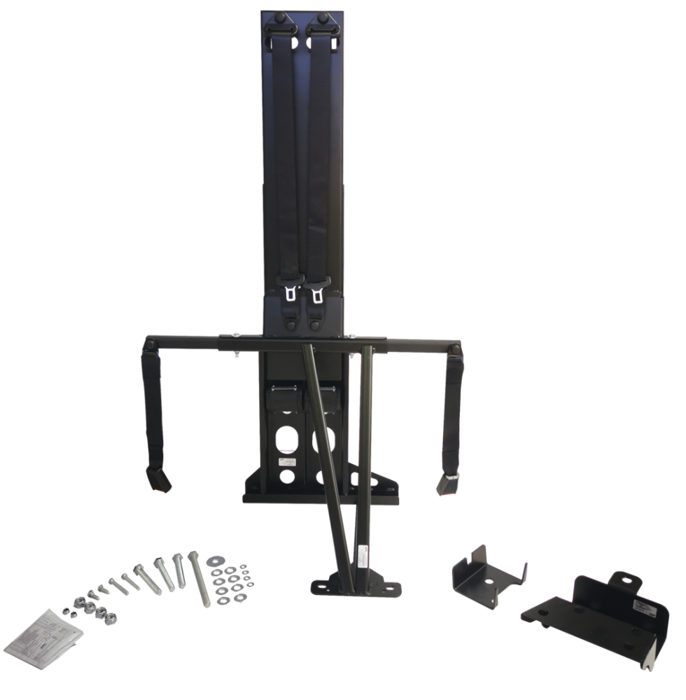 Dvojitá 3-bodová kotvící konstrukce pro bezpečnostní pásy, ve směru jízdy, jednotná pro různé šířky podvozku, je vybavena výškově nastavitelným sloupkem a teleskopickými rameny, což umožňuje rovnoměrné nastavení šířky kotevních bodů pásů i v nejužších vozidlech.