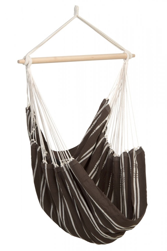 Závěsné křeslo Brasil se šířkou 1,30 m a délkou 1,60 m má královskou velikost a je tedy velké téměř jako klasická brazilská houpací síť. Stejně jako u všech našich brazilských houpacích sítí zaručují 4násobně šité konce a extra hustá tkaná látka 400 g/m² maximální odolnost. Brasil se napíná 1,10 m dlouhou a 40 mm silnou dřevěnou tyčí, jejíž patentované otáčení (uvnitř silnější než vně) zabraňuje sklouznutí lan dovnitř.