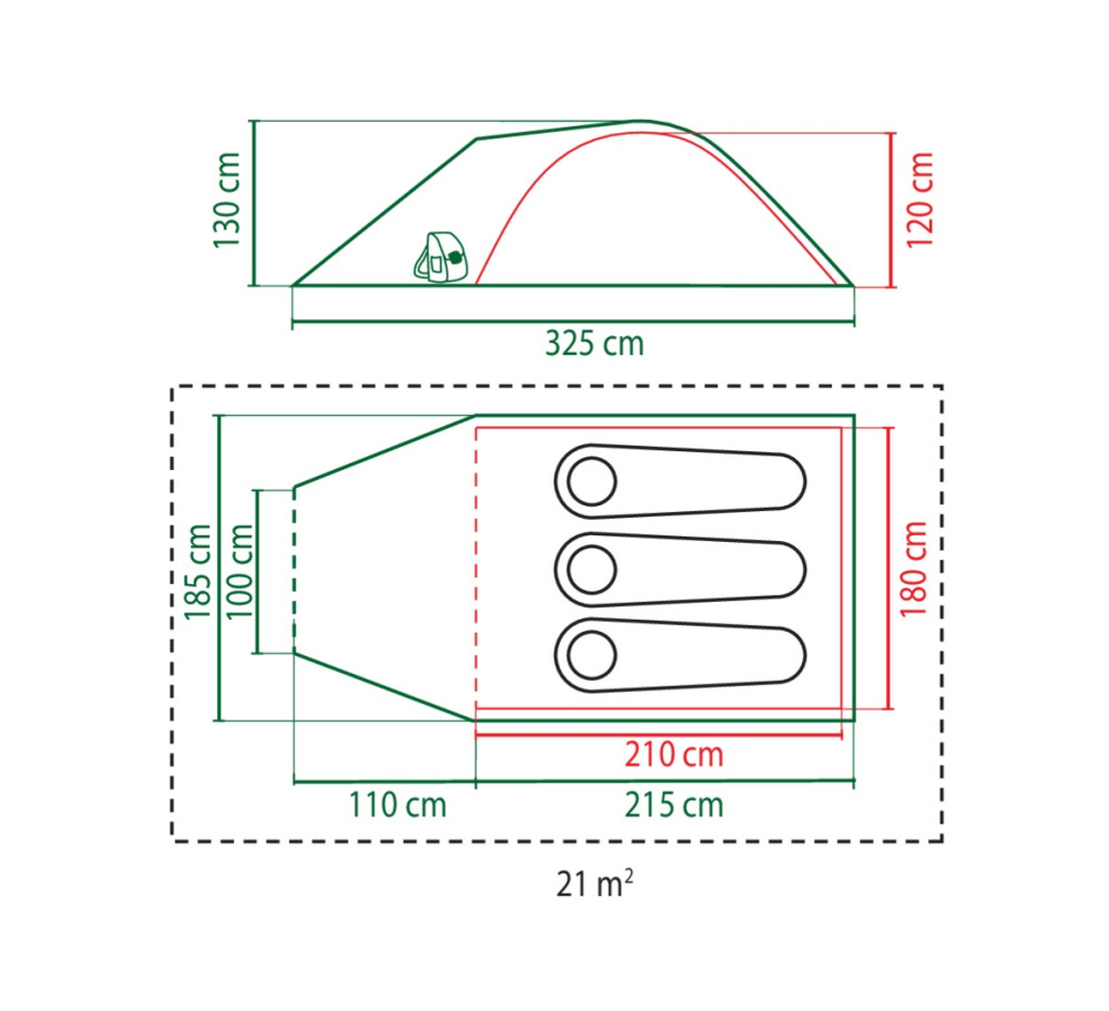 Vnější stan: Polyester, PU zátěr, nehořlavý