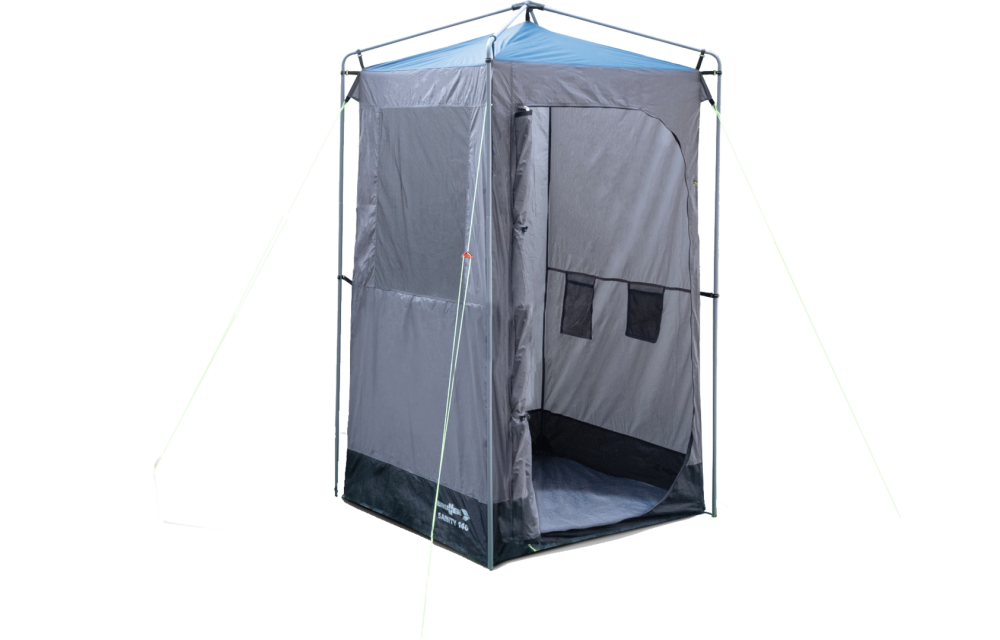 Univerzální sanitární a víceúčelový stan SANITY má robustní ocelovou tyčovou konstrukci, odnímatelnou podlahu a gázové okno, které je uzamykatelné. Nabízí spoustu funkčních detailů.