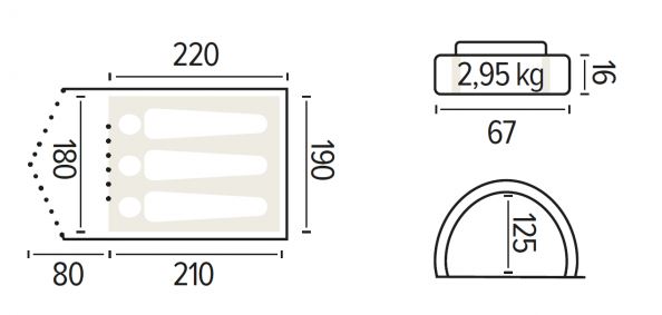 Vnější stan: Polyester 190T/68D (100% Polyester)