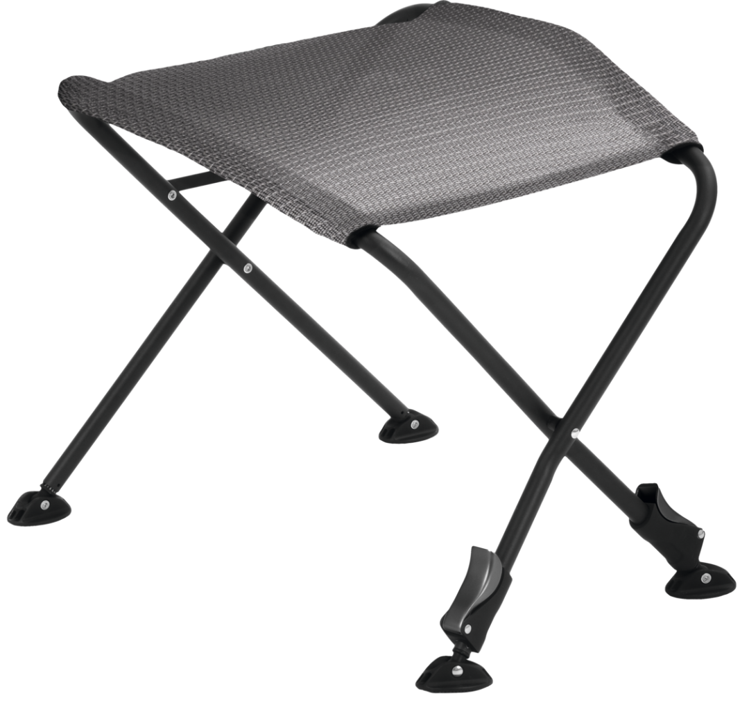 Volně stojící podnožka se skládá z robustního hliníkového trubkového rámu a je vybavena výškově nastavitelnými teleskopickými předními nohami a otočnými nožičkami proti propadnutí pro stabilitu v jakémkoli terénu.