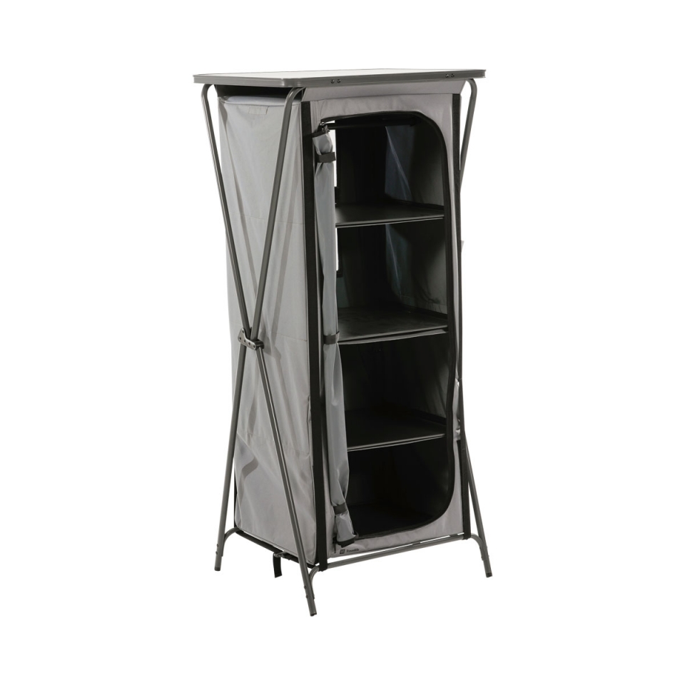 S kempinkovou skříní se můžete postarat o to, aby byl váš stan, mobilní dům nebo karavan na dovolené pěkně uklizený. Skříň Toledo má několik úložných přihrádek pro vaše kempingové vybavení a oblečení. Skříň se snadno sestavuje a snadno si ji vezmete s sebou v přenosné tašce.