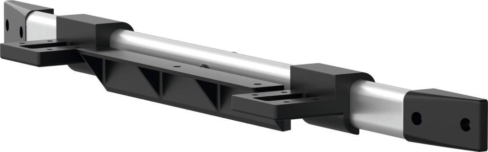 Sada posuvných kolejnic ke stolu STILO. Nastavitelný systém držáků pro připevnění stolu. Pohyblivé podpěry lze snadno přizpůsobit různým rozměrům stolu. Vyrobeno z plastu a eloxovaného hliníku. Délka 1 062 mm, výška 31 mm.