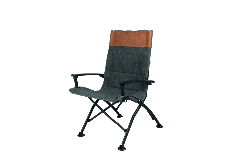 Kompaktní kempingová židle s vysokým komfortem. Potah je vyroben z extra měkkého materiálu, který působí jako kvalitní bavlna, čelo je vyrobeno z imitace kůže a působí velmi noblesně.