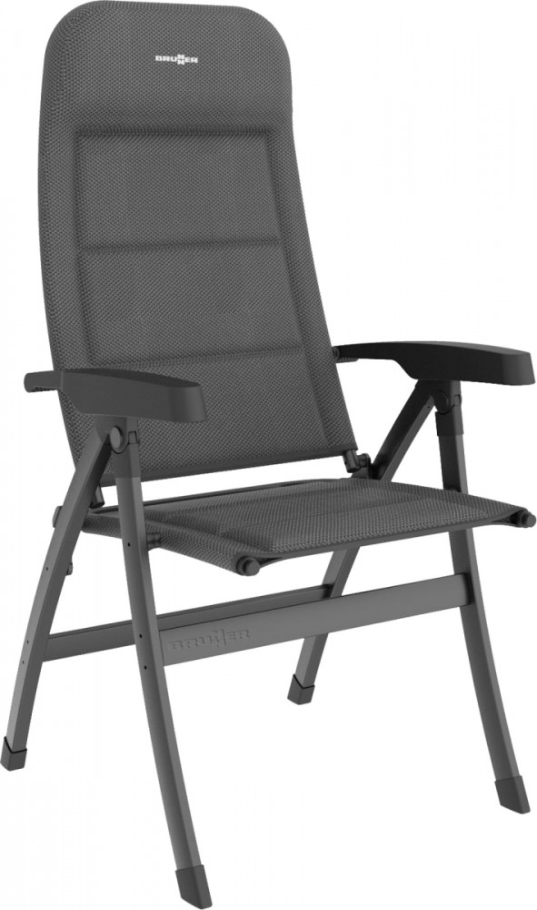 Inovativní čtyřnohé skládací křeslo s nastavitelným opěradlem v sedmi směrech. Vlastnosti: hliníkový rám z vysoce pružného trapézového profilu, klenuté nohy pro větší stabilitu a skvělý vzhled. Nový skládací mechanismus. Křeslo je ergonomické a nastavitelné v sedmi směrech. Zádová opěrka s integrovanou, čalouněnou opěrkou hlavy, ergonomické područky z robustního plastu, středový kloub z robustního kovu, velmi kompaktní a snadno přenosná velikost balení. Potahová látka: Prodyšná, polstrovaná 3D látka (100% polyester). Je možné připevnit opěrku nohou.