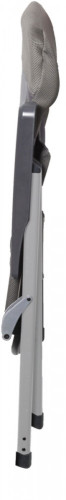 Moderní, skládací čtyřnohé křeslo s polohovatelným opěradlem. Hliníkový rám vyrobený z odolného oválného profilu. Potahová látka: Syntex Plus (100% polyester). Ergonomické opěradlo nastavitelné v sedmi směrech s integrovanou, polstrovanou opěrkou hlavy. Područky vyrobené z odolného plastu. Středový kloub vyrobený z robustního kovu. Je možné připevnit opěrku nohou. Velmi kompaktní a snadno přenosná velikost balení.