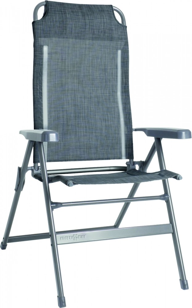 Moderní, skládací čtyřnohé křeslo s polohovatelným opěradlem. Hliníkový rám vyrobený z odolného oválného profilu. Potahová látka: Syntex Plus (100% polyester). Ergonomické opěradlo nastavitelné v sedmi směrech s integrovanou, polstrovanou opěrkou hlavy. Područky vyrobené z odolného plastu. Středový kloub vyrobený z robustního kovu. Je možné připevnit opěrku nohou. Velmi kompaktní a snadno přenosná velikost balení.