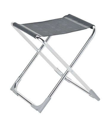 Stolička s hliníkovým rámem. Materiál potahu: 70% polyvinylchlorid, 30% polyester. Sedák cca 35 x 30 cm. Nosnost do 100 kg. Hmotnost 0,5kg.