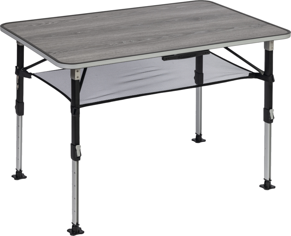 Prémiový kempingový a venkovní stůl s nově vyvinutým, exkluzivním skládacím mechanismem a ultralehkou voštinovou deskou stolu. Průběžná hrana stolu zaručuje dodatečnou stabilitu a bezpečnost. Díky centrální posuvné liště lze stůl snadno sestavit a rozložit během několika sekund.