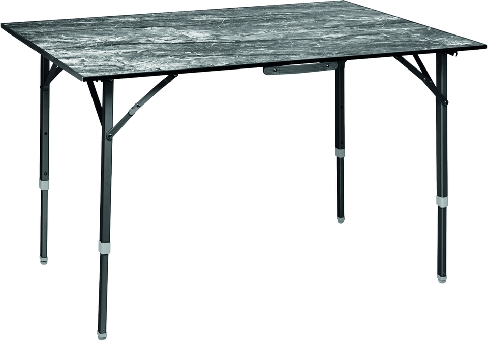 Prvotřídní kempingový a outdoorový stůl s nově vyvinutým, exkluzivním skládacím mechanismem a ultralehkou stolní deskou s hliníkovým profilem po celém obvodu. Díky centrální posuvné liště lze stabilní rám stolu bez problémů sestavit a rozložit během několika sekund.