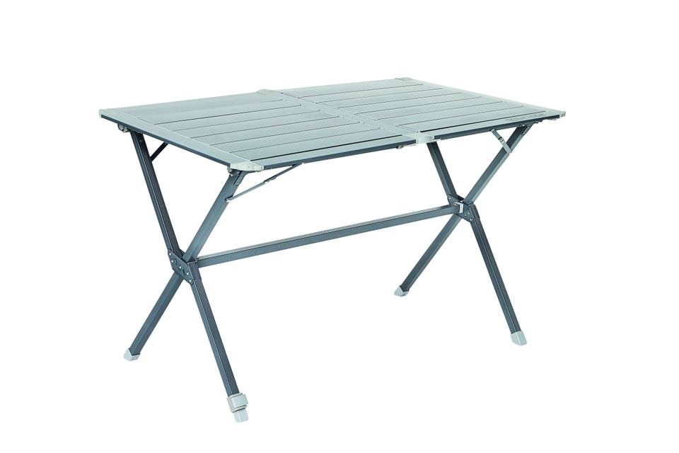 Výjimečně robustní hliníkové stoly s nastavitelnými nohami stolu. Deska stolu z lakovaného hliníku s novým systémem spojování lamel pomocí plastového řetízku. Hliníkové nohy stolu (ø 25 mm) s výztuhou.