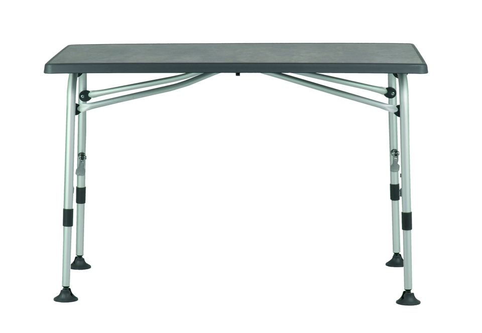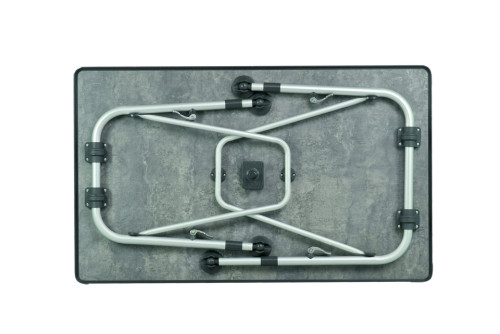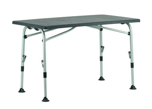 Stoly PERFORMANCE SUPERB jsou vybaveny stabilním lehkým tvrdým hliníkovým rámem. Všechny čtyři nohy jsou výškově stavitelné pomocí rychlouzávěru a jsou vybaveny talířovými patkami. Ty zabraňují propadání do měkké půdy. Nové stolové desky vyvinuté společností Westfield TQC jsou vyrobeny z materiálu odolného vůči povětrnostním vlivům, UV záření a teplu. Těsnění tvrdého povrchu chrání před poškrábáním. Deska stolu šedá.