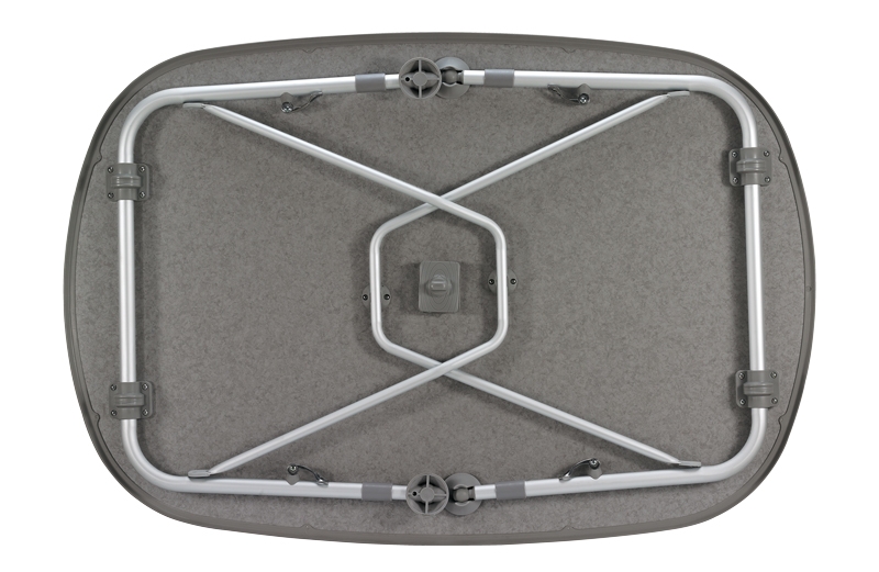 Stoly PERFORMANCE SUPERB jsou vybaveny stabilním lehkým tvrdým hliníkovým rámem. Všechny čtyři nohy jsou výškově stavitelné pomocí rychlouzávěru a jsou vybaveny talířovými patkami. Ty zabraňují propadání do měkké půdy. Nové stolové desky vyvinuté společností Westfield TQC jsou vyrobeny z materiálu odolného vůči povětrnostním vlivům, UV záření a teplu. Těsnění tvrdého povrchu chrání před poškrábáním. Deska stolu šedá.