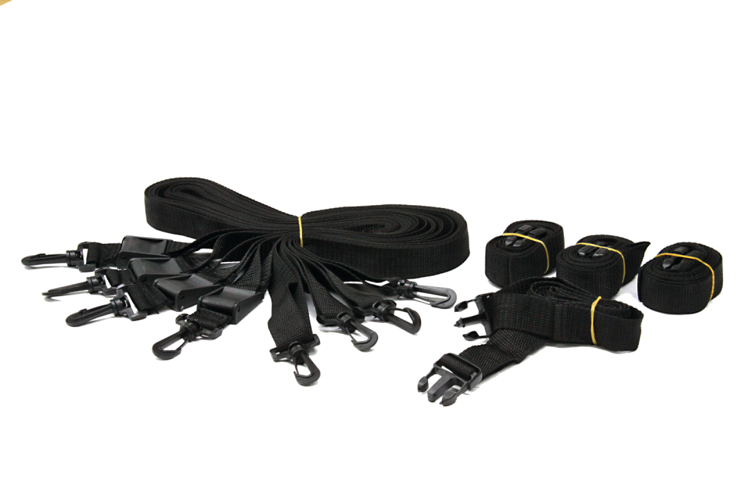 Skládá se ze 4 popruhů (240 cm) pro přední a zadní část a 4 příčných popruhů (380 cm) pro spodní část vozidla.