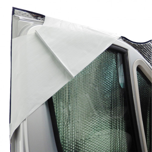 Termo podložka FOUR SEASONS. Pro polointegrovaná a výklenková vozidla. Připevnění k vozidlu je velmi snadné, protože rohože jsou vyrobeny z jednoho kusu a jsou zavěšeny pouze na hranách dveří a jsou zaklapnuté (bez šroubů a vrtání). Materiál: Horní 100% polyester, spodní 100% polyurethan. V zimě izoluje proti chladu, v létě udržuje sluneční paprsky venku místo toho, aby pronikaly okenní tabulí a vyhřívaly interiér. Když je pěkné počasí, můžete otevřít přední část a pozorovat přírodu nebo dění mimo vozidlo. Vyrobeno z termofólie odolné proti povětrnostním vlivům s polyesterovou fólií potaženou hliníkem na obou stranách, která je UV stabilizovaná.