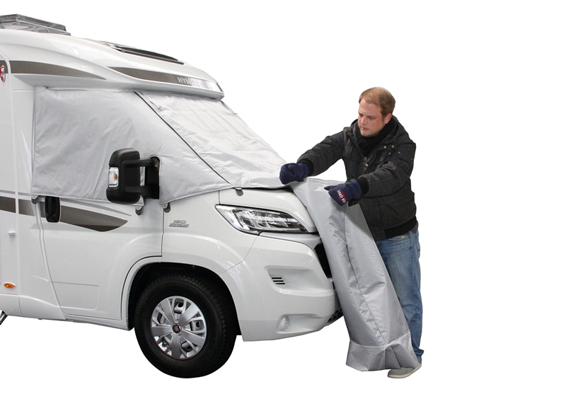 Lehká, cca 20 mm silná vnitřní izolace z polyesterových vláken udržuje teplo v interiéru. Rohože se jednoduše nasazují zavěšením kapes v mírně otevřených dveřích a zajišťují přiloženými gumovými popruhy. Kapsy ve dveřích na Ducato od roku 2006 mají nastavitelnou velikost a také se hodí s nainstalovaným zatemňovacím systémem. Novinkou je zateplený spodní díl LUX-DUO, který nabízí možnost spojení s vrchním dílem LUX přes integrovaný pásek na suchý zip podél horní části karimatky, čímž vznikne 2dílná TEPELNÁ IZOLACE. Po sestavení lze obě propojené části společně sejmout a později znovu připojit. Izolovaný základ LUX-DUO vytváří rozsáhlou vnější izolaci, která zasahuje až k zemi a výrazně zvyšuje komfort bydlení během zimní dovolené. Chrání před průvanem skrz neizolovaný motorový prostor, podběhy kol a dveře kabiny. Materiál je shodný s okenní rohoží, ale izolace je tenčí, aby se ušetřilo na objemu při cestování. Pevné čelní sklo chrání před průvanem pod kabinou řidiče.
