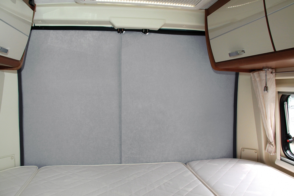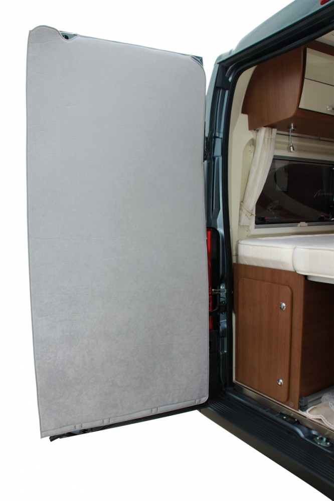 Zvýšený komfort bydlení v dodávce díky účinné tepelné izolaci v oblasti spaní. Izolace je vyrobena z příjemného materiálu, který má ve svém jádru cca 8 mm silnou PU pěnu v sendvičové konstrukci. Světle šedý polyesterový velur směřuje do obývacího pokoje a pohliníkovaná polyesterová fólie směřuje ven. Vhodné pro Fiat Ducato od roku 2006 s vysokým výřezem dveří.