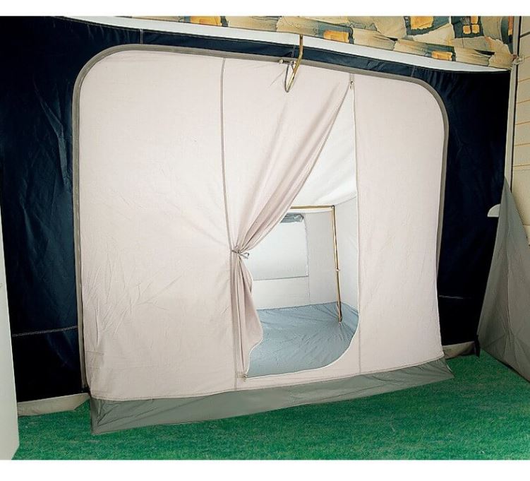 Vnější stan (potažená polyesterová tkanina, 2 střešní napínací tyče a moskytiéra) + vnitřní kabina (bavlna a všitá PVC podlaha stanu).