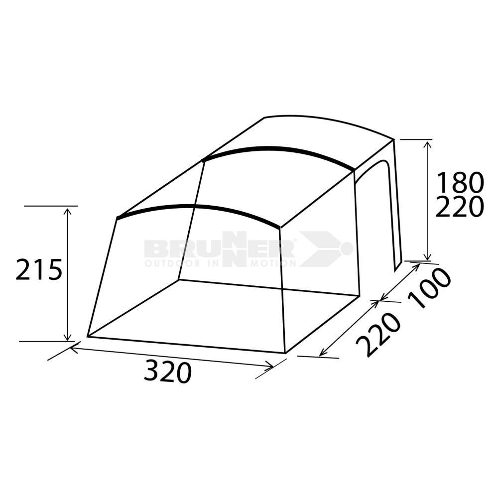 Volně stojící předstan k dodávce s nafukovacím systémem A.I.R. Tech. Předstan má připojovací zámek s přímým přístupem do vozidla. Všechna okna předstanu lze zatemnit. Přední a boční vchod je vybaven moskytiérou. Přední stříška poskytuje dodatečný stín. Předstan má velký spojovací vzduchový uzávěr a odnímatelný spojovací uzávěr se zipem. Výhodou je také spojovací zámek se vstupními dveřmi a uzamykatelný zadní panel.
