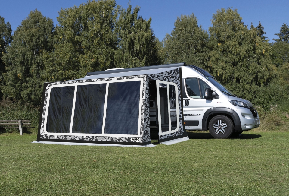 Předstan CAMOU Vás zaujme svým extravagantním maskáčovým vzorem, který mu zároveň pomáhá splynout s okolím (ať už v zimě či létě). Jeho předností je malá velikost a hmotnost balení, potažená střecha, super lehký materiál LightTex, tónovaná okenní fólie.