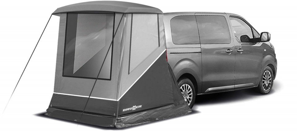Nově vyvinutý zadní stan ESCAPE se hodí pro různé identické modely vozidel: Peugeot Traveller, Citroën Spacetourer a Toyota Proace. Montáž je velmi snadná. Střecha stanu se jednoduše umístí přes zadní výklopné dveře a poté se připevní pomocí magnetických pásků a popruhů. Boční stěny jsou fixovány všitými magnetickými proužky. Ve spodní části je plášť stanu vyztužený četnými výměnnými žebříky. Montáž je provedena bez nářadí během několika minut. Velkou přední stěnu lze zcela srolovat nebo postavit jako sluneční stříšku. Do této stěny je všito velké gázové okno (uzavíratelné tónovanou fólií, uvnitř se zatemněním). Obě boční okna jsou vyrobena z tónované okenní fólie se zatemněním. Velkorysá vnější zástěna chrání před dešťovou vodou. Velmi stabilní ve větru díky stabilním napínacím popruhům a četným napínacím lanům.