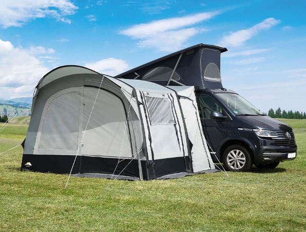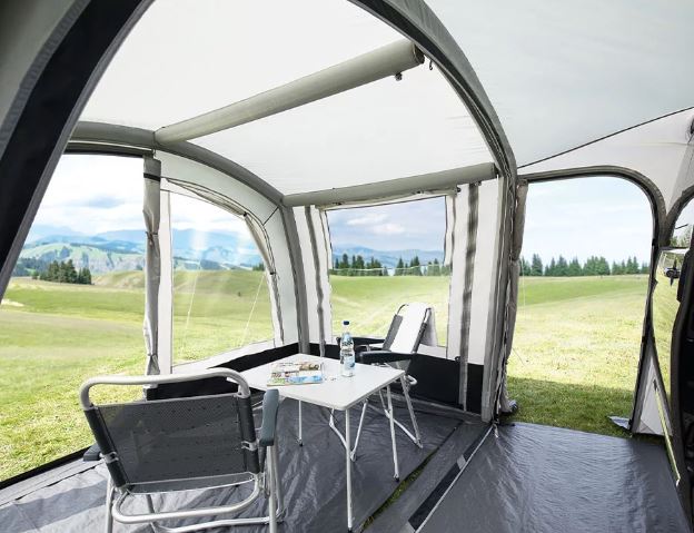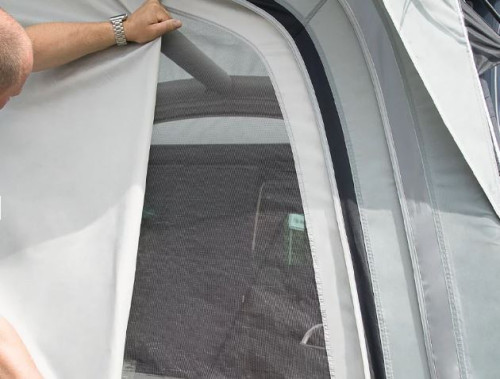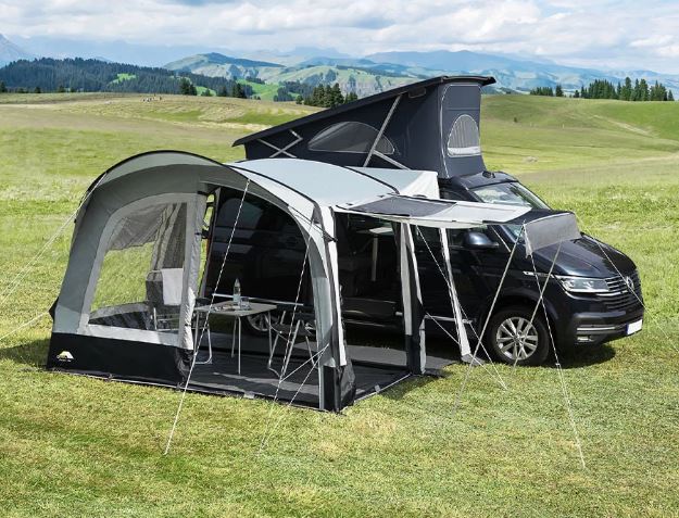Předstan RODEO AIR zapůsobí svou funkčností a dalšími funkcemi, jako je např. extra hluboký vchod včetně dvou možností vstupu. Stříška chrání přední stěnu a četné gázové vložky zajišťují dobrou ventilaci ve stanu. Pro dodávky s výškou dešťových svodů 180 - 220 cm.