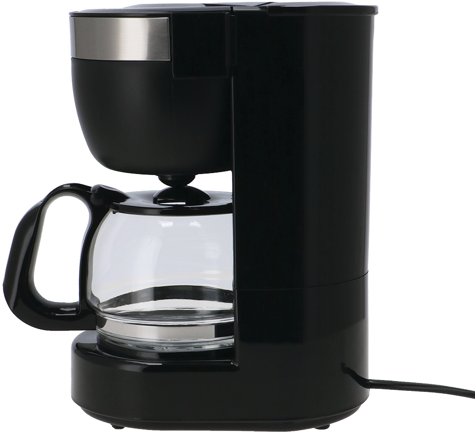 Na 6 šálků. Kávovar s protikapovým systémem, permanentním filtrem, otočným držákem filtru, funkcí automatického ohřevu, páčkou min/max, ochranou proti přehřátí, termostatem, tepelnou pojistkou a konvicí z vysoce teplotně odolného skla.