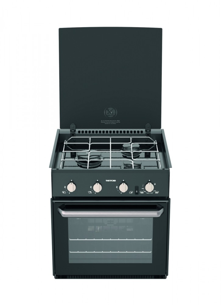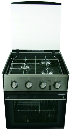 Vybavení: sada grilovacích pánví, dva rošty do trouby, chromované podpěry pánví, 12V zapalování.