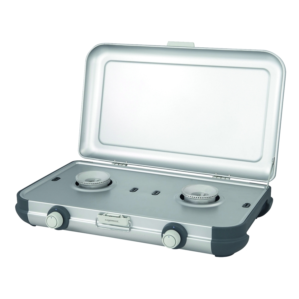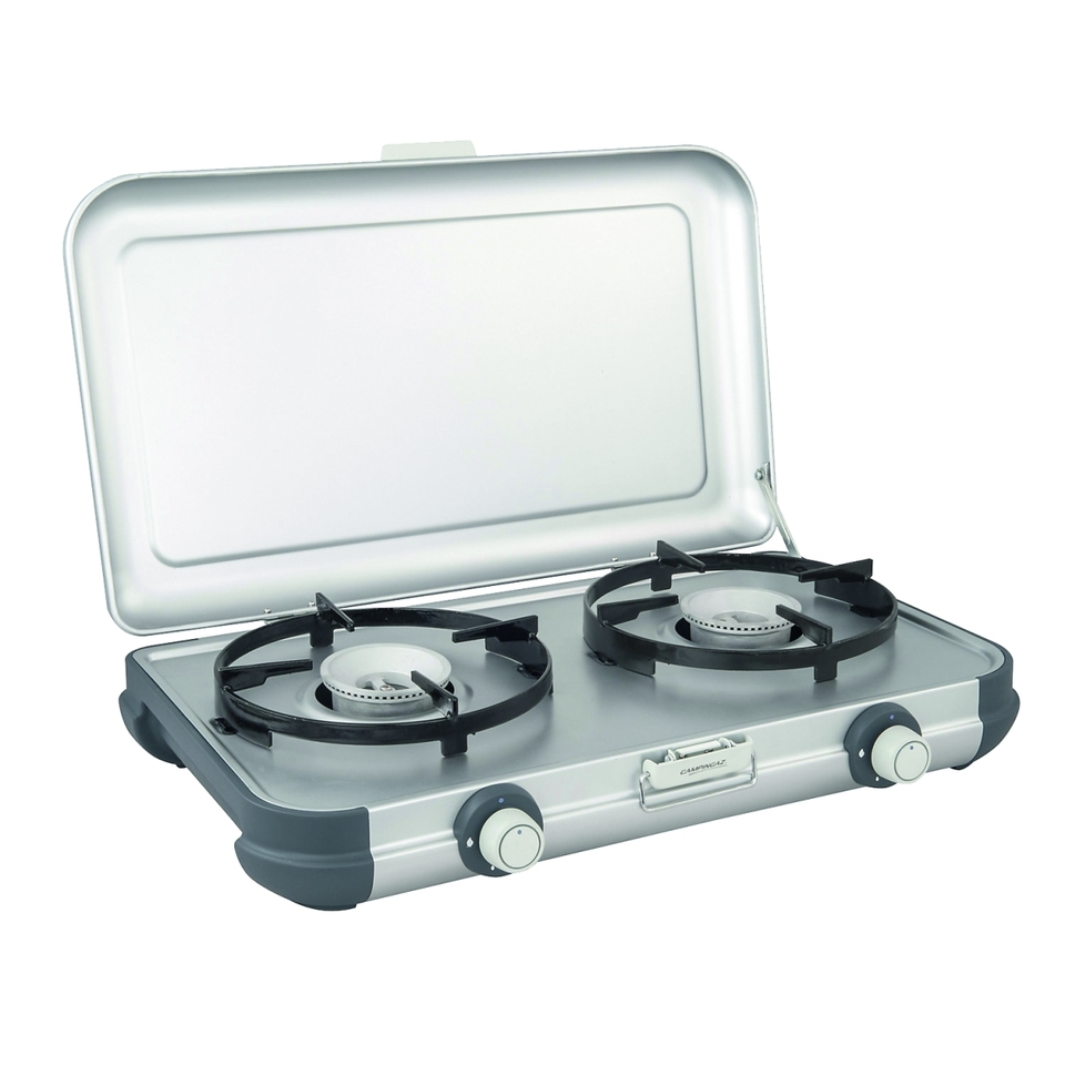 Camping Kitchen 2 je lehký a snadno přenosný dvouplotýnkový vařič, dostupný v kartušové i lahvové verzi v závislosti na délce vaší dovolené. Kompaktní design s vestavěnými držadly pro přenášení umožňuje prostorově úsporné skladování v autě nebo mobilním domě. Dále má vařič žáruvzdorné držáky na hrnce ze smaltované oceli, které zároveň slouží jako větrolam. Držáky hrnců lze snadno vyjmout pro rychlé a snadné čištění.