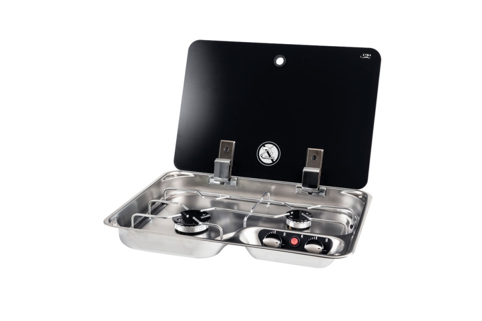 2-plamenná vestavná varná deska s krytem z tvrzeného bezpečnostního skla. S elektronickým zapalováním a bezpečnostním zapalovacím systémem. Výkon 2,9 kW (1 x 1 kW, 1 x 1,9 kW). Spotřeba plynu 200 g/h (1 x 73 g/h, 1 x 127 g/h). Plynová přípojka 30 mbar. Rozměry (ŠxVxH) 460 x 80 x 335 mm. instalační rozměry 450 x 325 mm. Hmotnost 4,6 kg.