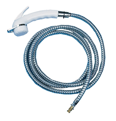 Sprchová hlavice s vypínací páčkou a 2 m sprchovou hadicí. S kolíkovou spojkou pro přívodní klapky a zásuvky na vodu. Barva bílá.
