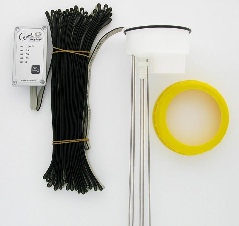 • Délka tyče max. 370 mm (přizpůsobení výšce nádrže) Rozsah dodávky: Zobrazovací jednotka, upevňovací šrouby, snímač hladiny vody, 5žilový plochý kabel pro připojení displeje a senzoru kompletní se zátkami, šroubovacím kroužkem DIN 96, montáž a Návod k obsluze včetně vrtací šablony.