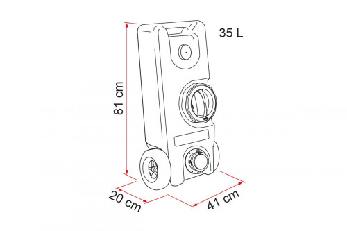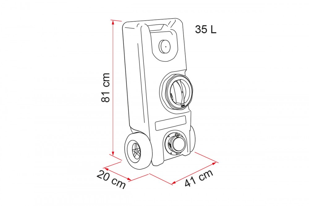 Nádrž na čerstvou vodu, snadná přeprava. Vyrobeno z netoxického materiálu. S velkým šroubovacím otvorem. Snadno se čistí.