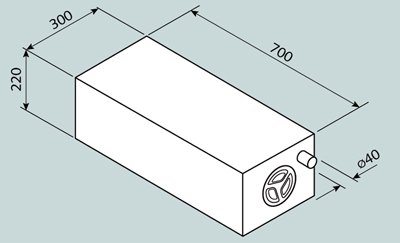 Univerzální nádrž. Pro položení nebo postavení. Se vstupní přípojkou 40 mm (lze otevřít) a čisticím otvorem s ø 12 cm a víkem.