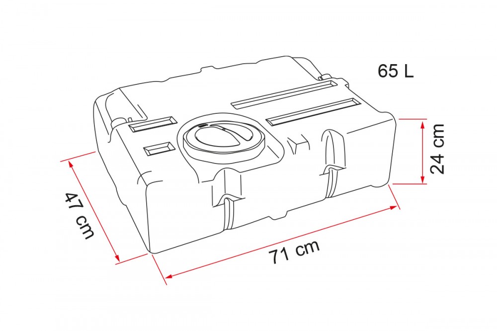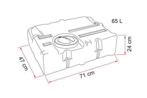 Nádrž na čerstvou vodu 70 l vyrobená z netoxického materiálu. Možnost vodorovné nebo svislé instalace. Dodáváno se šrouby a příslušenstvím pro upevnění. Plnicí otvor ø 38 mm. Odtok ø 13 mm. Velikost 70 x 47 x 24 cm. Hmotnost 3,7 kg.