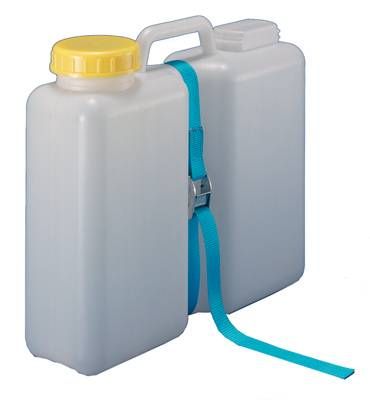 Prohlubeň uprostřed kanystru pro lepší uchycení ve vozidle. S 1 m poutacím popruhem a zapínací přezkou. Rozměr 40 x 12 x 36 cm.