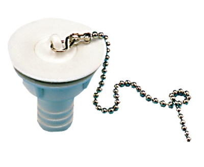 Se zátkou, řetězem a těsněním. Vyrobeno z bílého plastu. Hadicová přípojka ø 19 mm. Pro odtokové otvory s ø 25 - 35 mm.