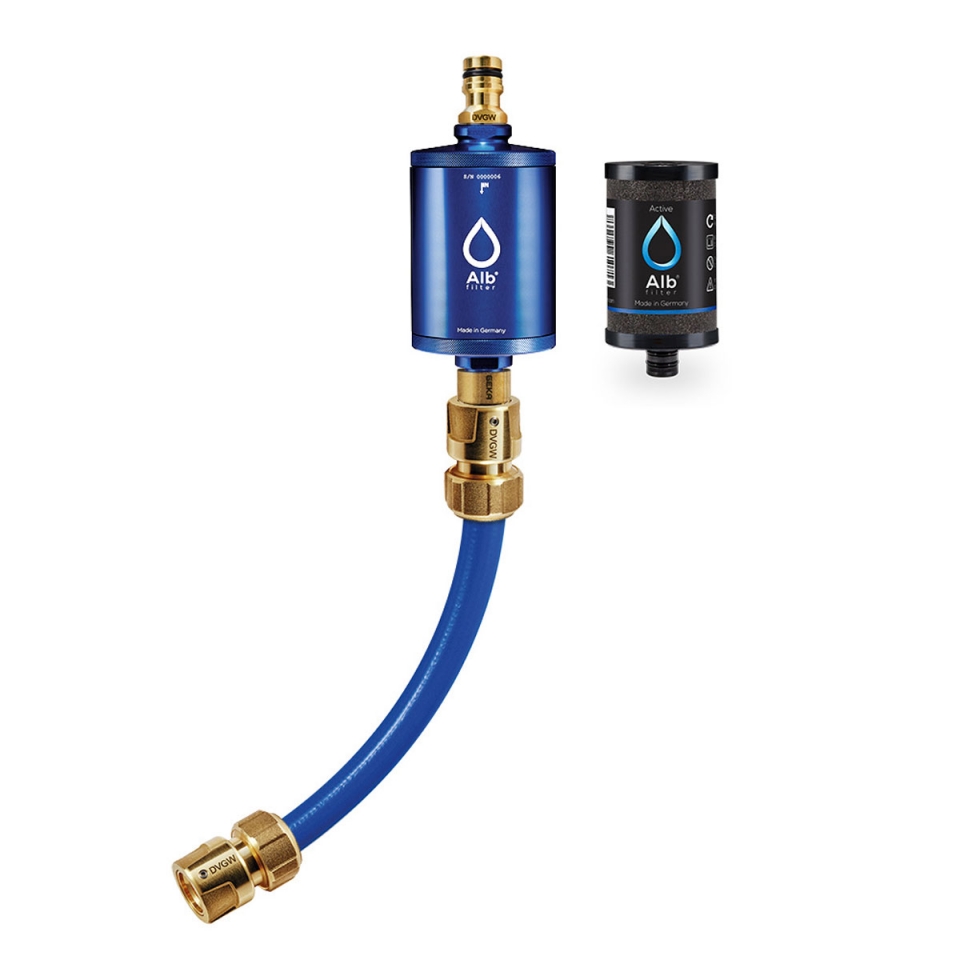 Zajištění vody je jedním z nejdůležitějších úkolů, pokud cestujete například v obytném voze nebo na lodi. S připojovací sadou Alb Mobil získáte čistou a zdravější vodu i z nedůvěryhodných zdrojů. Pomocí spojovacích systémů GEKA a přídavných spojovacích prvků kohoutků můžete snadno čerpat čerstvou vodu na většině odběrných míst. Pouzdro filtru Alb, mosazné spojovací adaptéry, konektory GEKA a hadice na pitnou vodu jsou bezpečné pro potraviny a vyhovují DVWG. Díky následné spolehlivé filtraci vodními filtry Alb to nemá žádný negativní vliv na kvalitu vody.