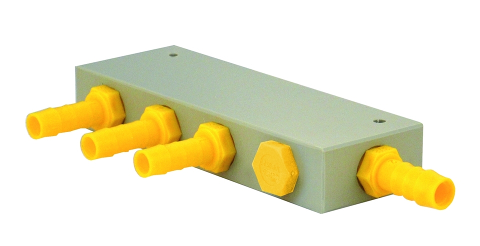 Pro centrální rozvod vody na jednom místě, s montážními otvory. Optimální průtok, stabilní, mrazuvzdorný, tlakový, bezpečný pro pitnou vodu. 8 bar max. vnější ø 10 mm.