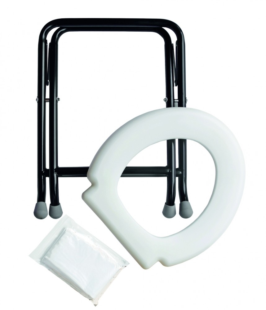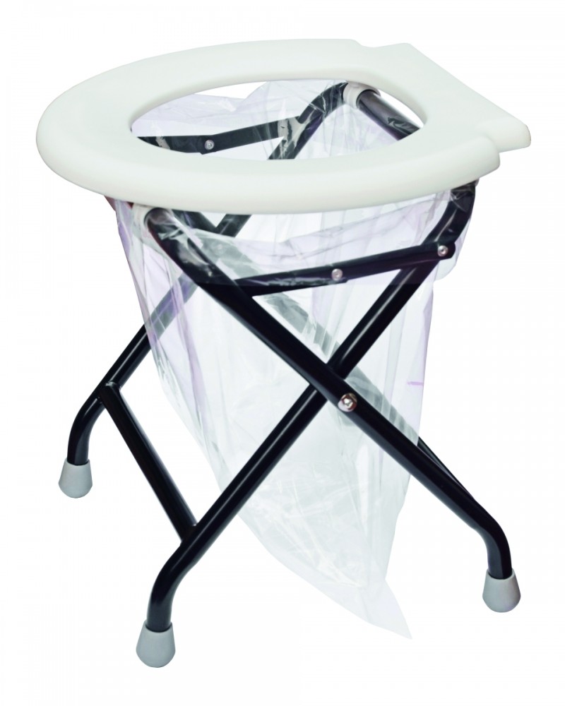 Praktická skládací toaleta na cesty. Lze ji rychle a bez námahy uložit a během okamžiku je připravena k použití. Šetrná k životnímu prostředí, protože není potřeba žádná voda. Ocelový rám ø 21 mm. Obsahuje 6 plastových sáčků.