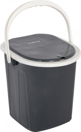 Přenosné kbelíkové WC se sedátkem, víkem a rukojetí. Robustní a stabilní plastová konstrukce. Kompaktní a snadno se přenáší, představuje praktické a pohodlné řešení pro venkovní použití a kempování.