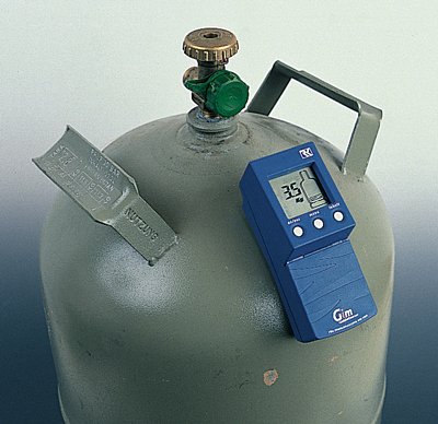 Mobilní měřič obsahu plynu pro 11 kg ocelové propanové láhve. S GIMmobilem od REICH můžete během několika sekund určit obsah plynu ve své 11 kg propanové láhvi. Revoluční měřicí technologie je jediným přístrojem na trhu, který zaručuje přesné měření obsahu láhve do 2 kg. K provedení měření se GIMmobil jednoduše umístí na horní část láhve a magneticky přidrží. Stisknutím tlačítka je obsah rychle a spolehlivě určen a zobrazen na displeji. Stisknutím tlačítka menu lze znovu vyvolat poslední měření. To je zvláště výhodné, pokud provádíte měření v určitých intervalech pro výpočet spotřeby plynu. Teplotu můžete také zjistit pomocí tlačítka nabídky.