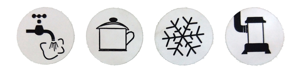 Samolepky pro lepší přehled ventilů. 4 různé symboly.