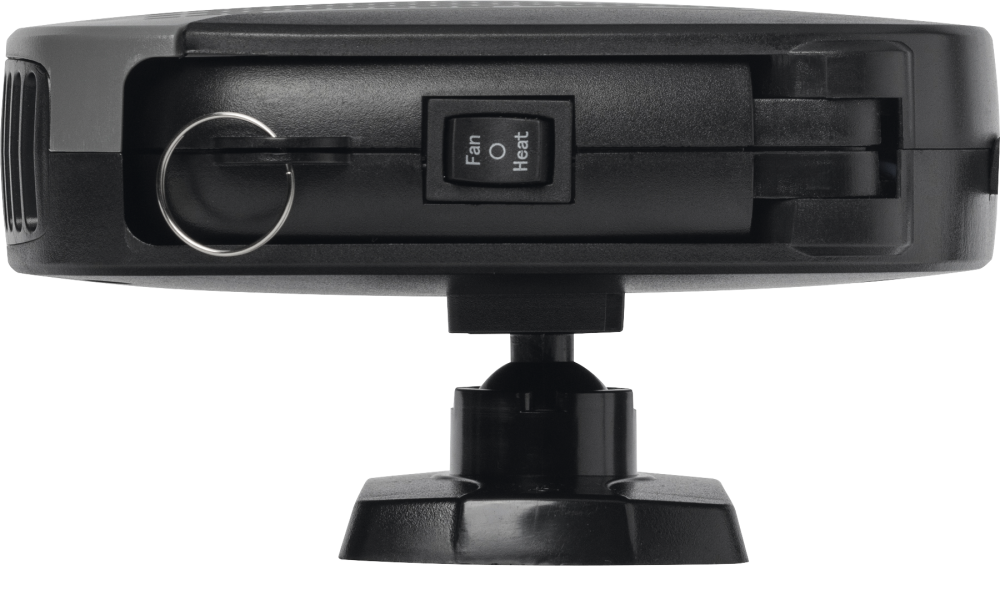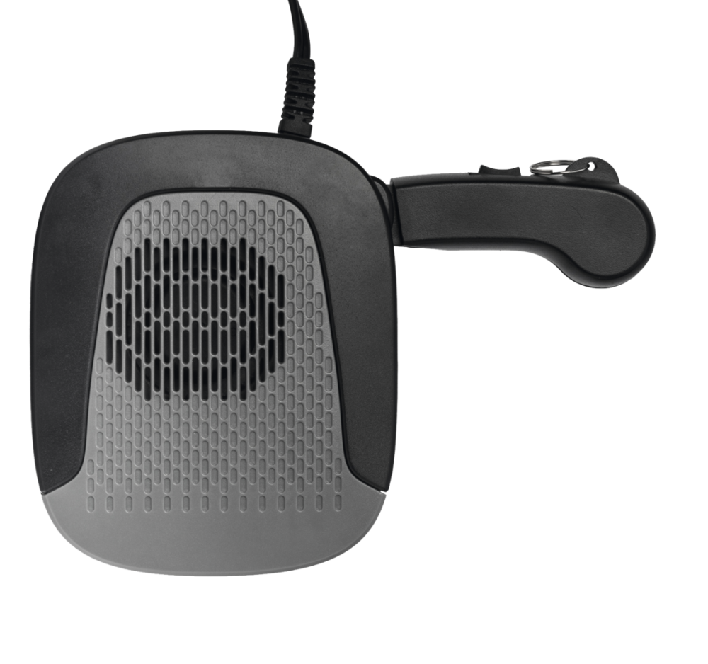 Topidlo s ventilátorem, napájené 12 V DC. Velmi účinné, s otočnou základnou pro palubní desku a integrovaným přepínačem pro přepínání z topení na ventilátor.