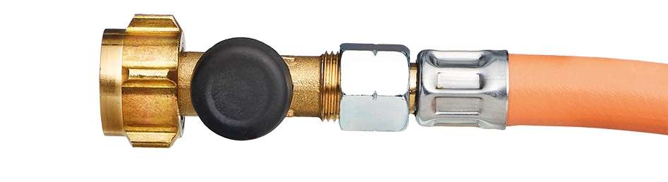 Vysokotlaká bezpečnostní hadice na plyn pro nástěnné regulátory s německou normou závitu a bezpečnostním ventilem.