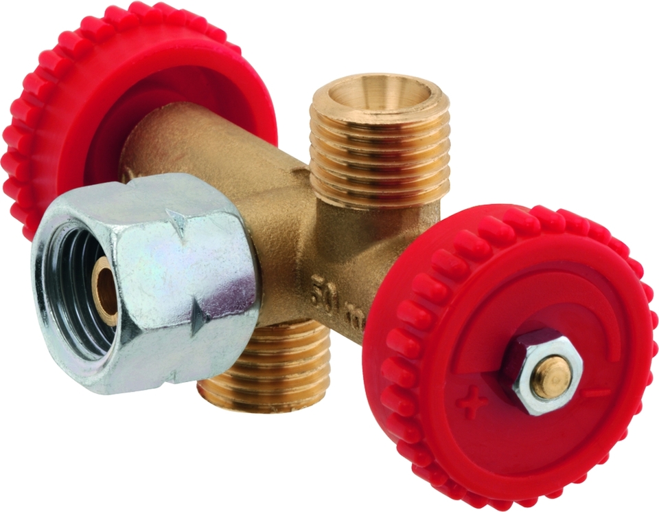Pro připojení k výstupu regulátoru, pro připojení několika spotřebičů současně. Vyrobeno z mosazi, s uzavíracím zařízením. Plynulá regulace dodávky plynu např. grily nebo sporáky. Maximální přípustný tlak: PS 4 bar. Certifikát přezkoušení typu DVGW. Vývody, které se nepoužívají, musí být také uzavřeny převlečnou maticí.