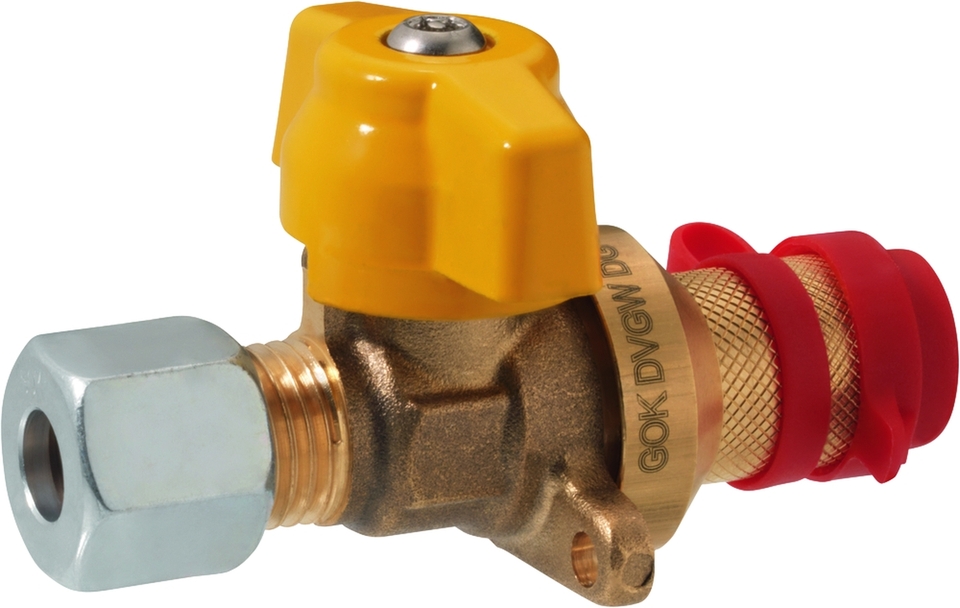 Pro instalaci do potrubí jako možnost připojení pro přenosné plynové spotřebiče. Kulový kohout jako uzavírací ventil s bezpečnostní spojkou, pouze plně otevřená nebo zavřená poloha.