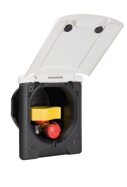 Plynová klapka s rychlospojkou. Například k připojení grilu. Venkovní plynová zásuvka pro připojení externích plynových zařízení. Termoplast, barva Fiat bianco 210.