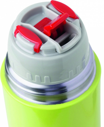 Vakuová láhev na pití s hrnkem na pití. Dvouplášťová vakuová izolace, vnější a vnitřní miska z nerezové oceli, protiskluzová základna (protiskluzová), nepropustná zátka, snadné nalévání, včetně servírovacího šálku. Objem 0,5L. Hmotnost 400g.